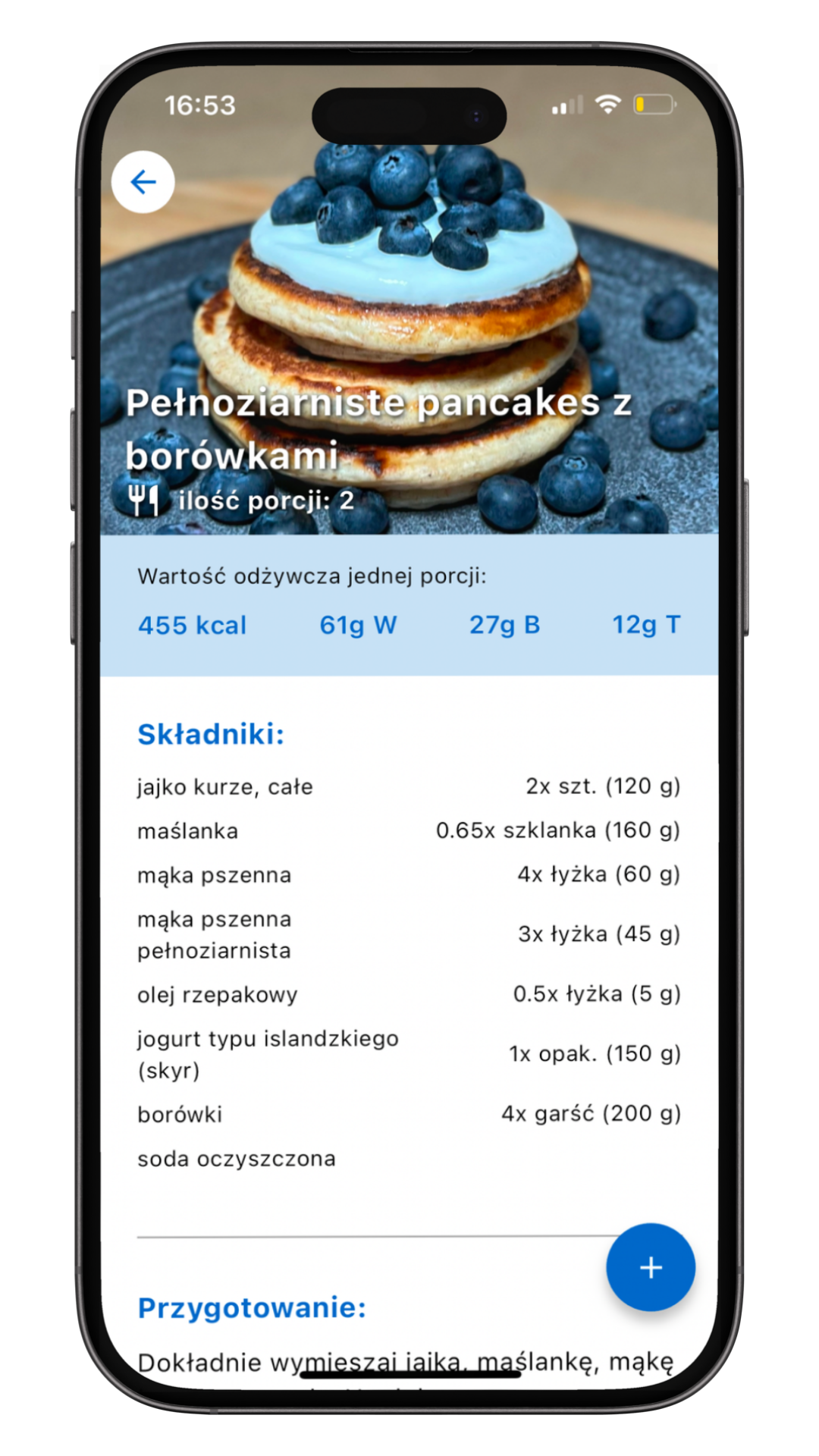 – wygodny dostęp do bazy przepisów na posiłki z podaną wartością odżywczą,
